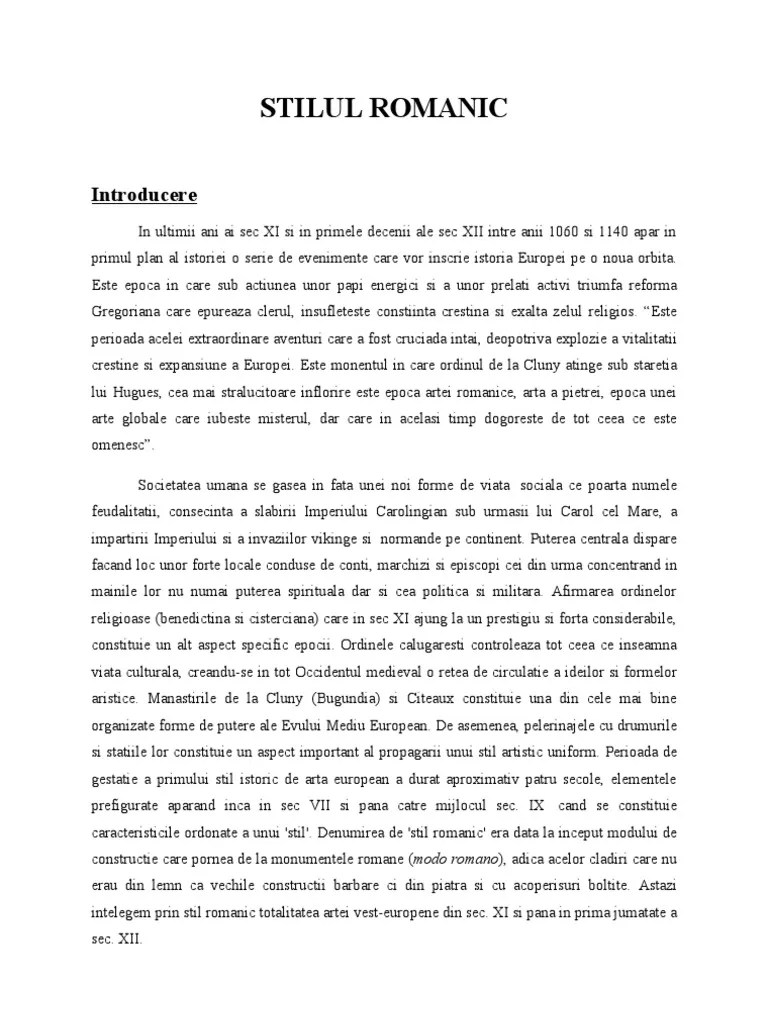 Arta romanica este o arta exclusiv religioasa, creata de calugari si oameni ai bisericii... Stilul romanic a păstrat formele de tradiție romană, în care a integrat elemente carolingiene și bizantine. Înainte de cucerirea angliei de către normanzi, în 1066, în anglia nu mai rămăsese niciun edificiu întreg datând din perioada saxonă. Romantismul este o înclinare spre lirism, spre individualism, spre visare, fantezii şi melancolie.. 05.10.2018 · atunci stilul romantic ţi se potriveşte.